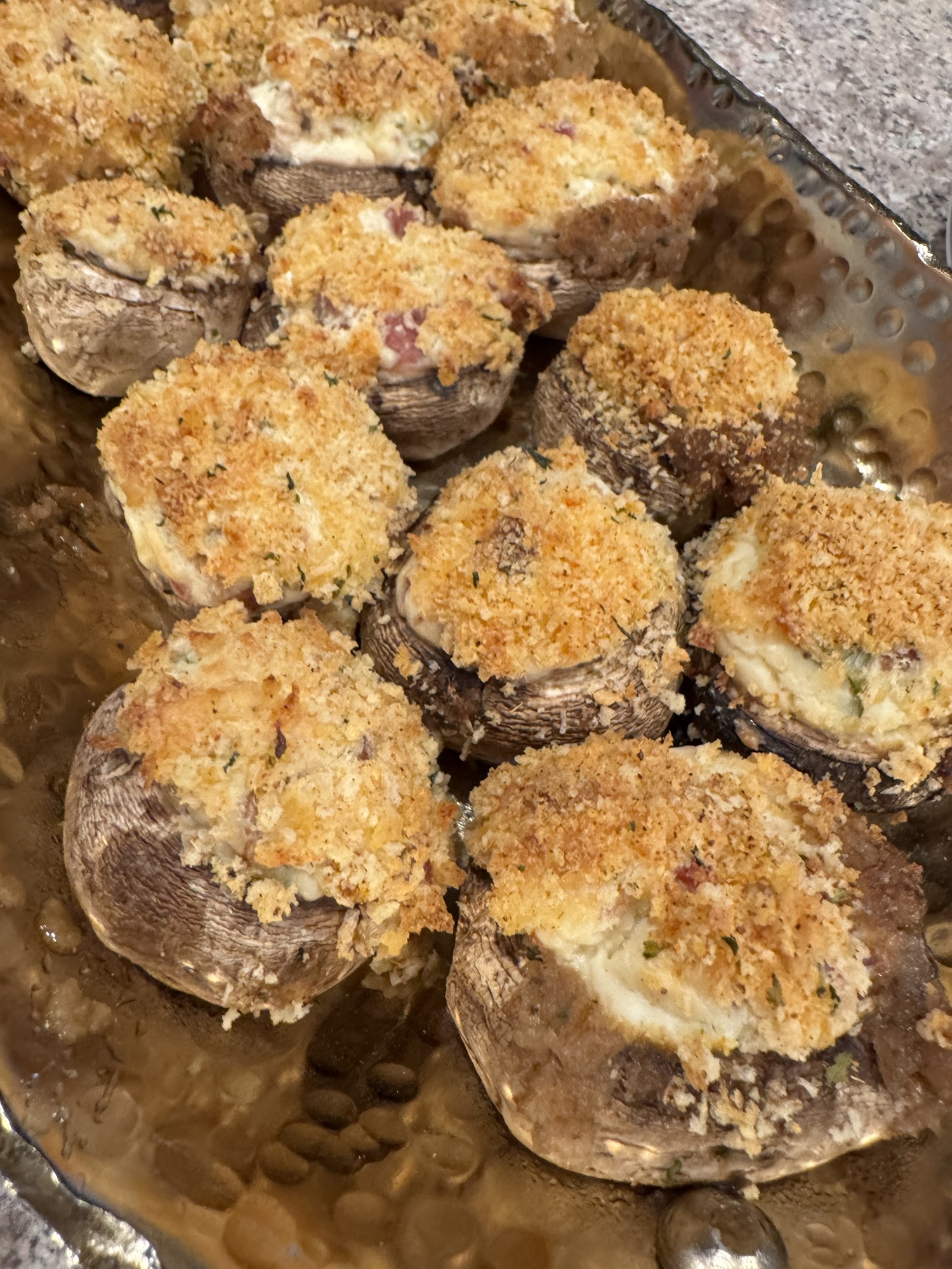 - 1.5 pounds of round white mushrooms (I used 2 14oz cartons of “white stuffer mushrooms)