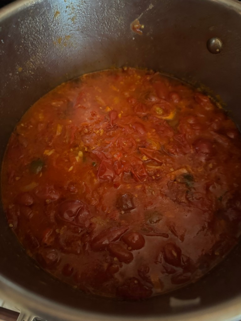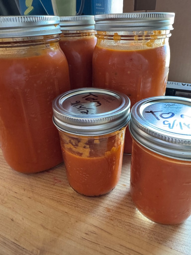 Almost all of the components to this delicious sauce came directly from our summer garden. The ingredients purchased from the store will be noted with an asterisk **
