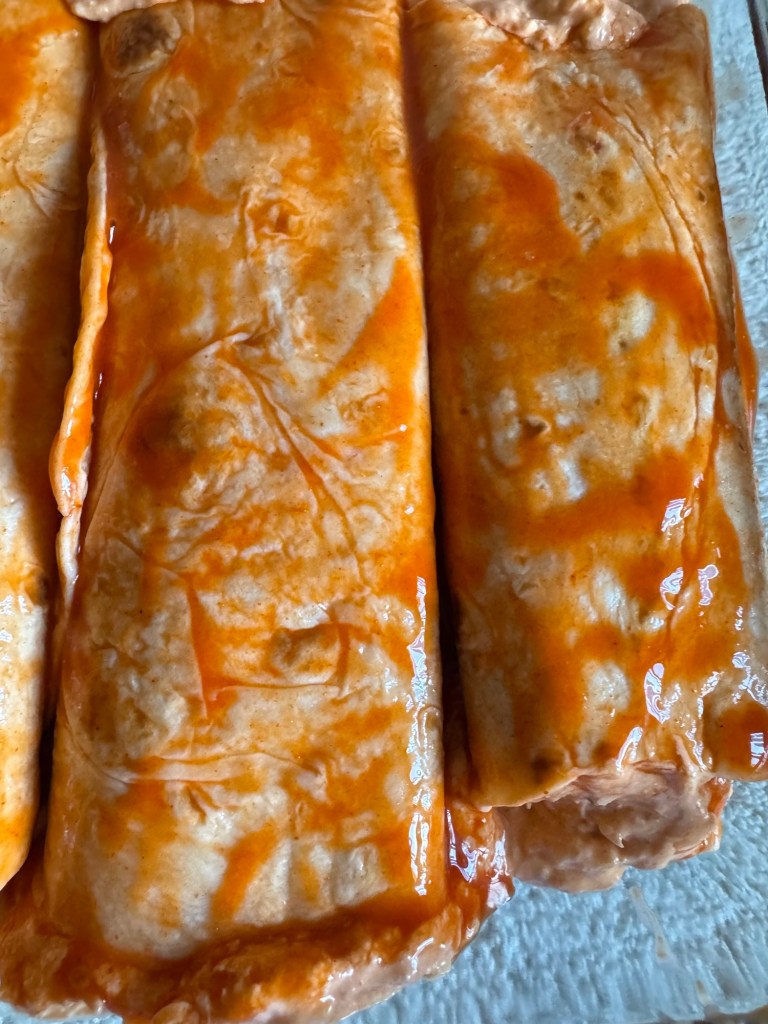 I know that flour tortillas are blasphemous when it comes to authentic enchiladas, but in this meal we weren’t looking for authenticity, it was more like audacity.