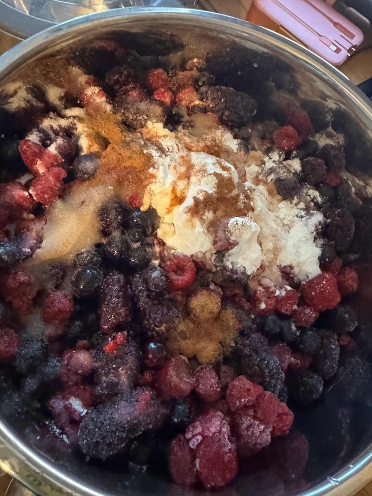- In medium bowl, combine berries, 3/4 cup sugar, 2 tablespoons flour, lemon juice, vanilla, cinnamon, 1/4 teaspoon salt, and 1/4 cup water.