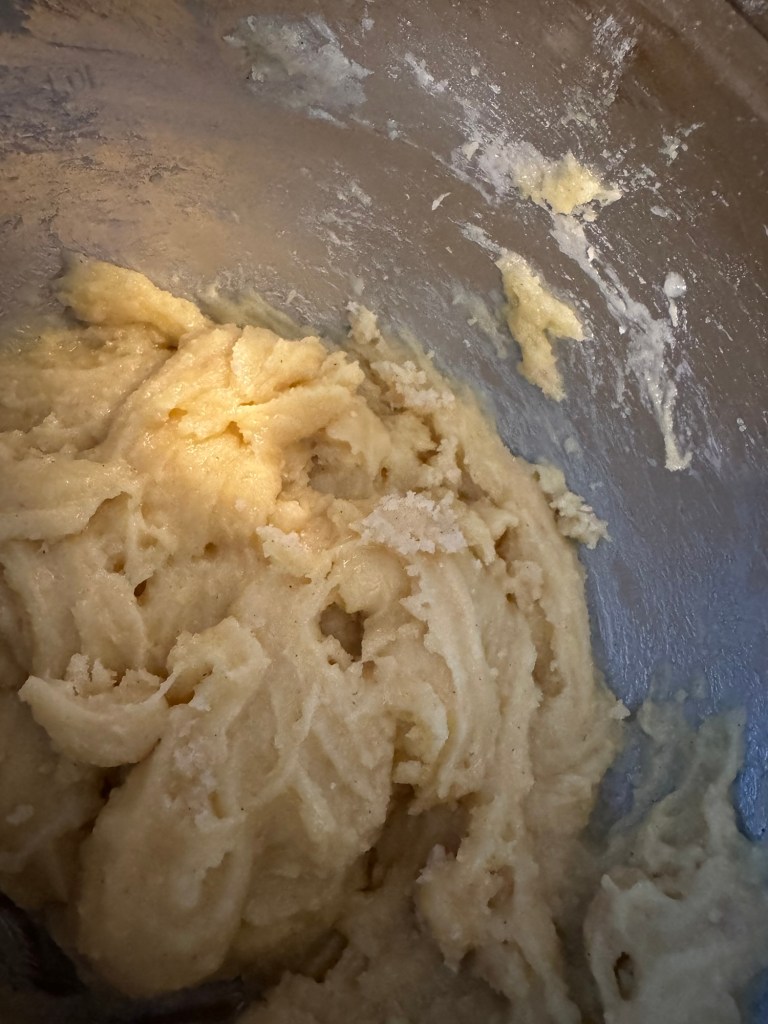 - Drop in 9 portions over filling space evenly (batter will spread during baking)